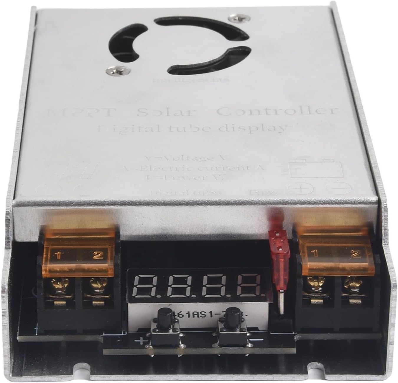 Product Description: Product name: MPPT boost solar controllerDisplay: LED displayInput voltage: 12V-50V Output voltage: 24V/36V/48V/60V/72VMaximum current: 12ARated power: 18V-300W/36V-450WCompatible batteries: Lead-acid/Lithium/Lifepo4/GelSize: 113*86*39 (mm) Weight: 242gConversion efficiency: 98%Protection level: IP30Shell material: magnesium aluminum alloyWorking temperature: -20℃-60℃Precautions:1. Do not use the solar controller under voltage overload, power overload, etc. conditions.2. If the solar panel is not connected, the solar controller will not work properly.3. Please set the voltage before installing the solar controller to for ENSURE that the solar controller voltage is consistent with the battery voltage.4. Installation: connect the panel to the solar controller, then connect the battery.5. All input output lines of the solar controller are red for the positive pole black for the negative pole.6.To avoid possible power outages, keep connecting cables as short as possible.7. Solar panels gain maximum power when exposed to strong sunlight. Do not place solar panels behind glass objects (e.g. ). Also make sure nothing is covering the solar panels.8. It is normal for the solar controller to generate heat when it is working. Please install the solar controller in a ventilated environment.9. Do not replace or replace the fuse yourself. The solar controller's fuse is 15A.Package Included:1 x solar controller