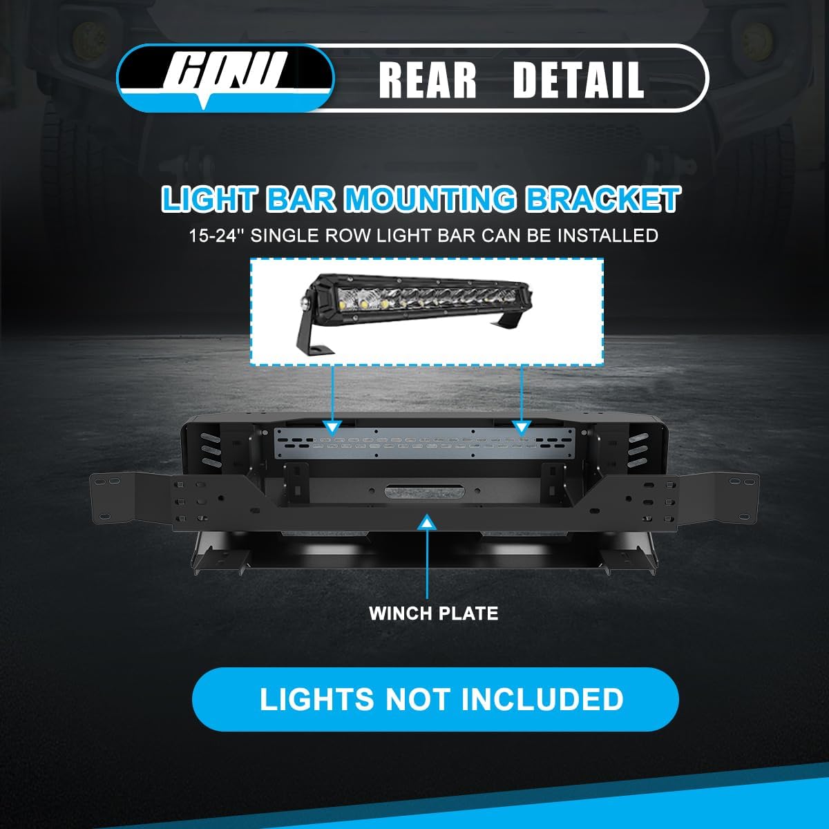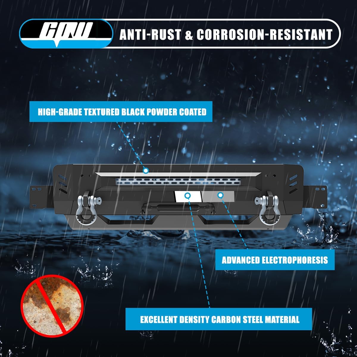 | Included Components | 1 set of Mounting Hardware, 1 x Mid-Width Front Bumper, 1 x Winch Plate, 2 x D-Ring Shackles |