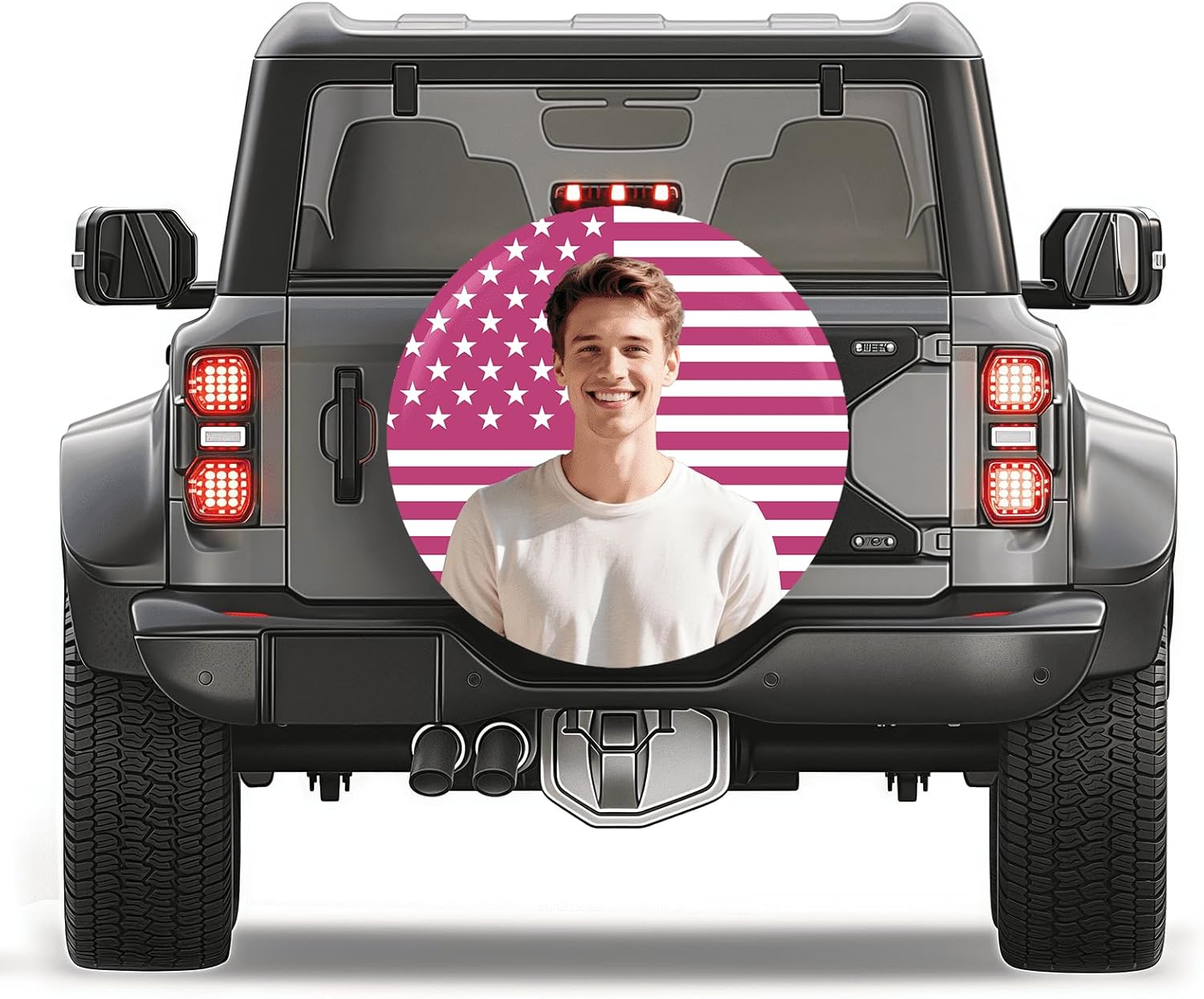 This custom camper spare tire cover is designed to protect your spare tire, plain and simple.Personalized spare wheel cover is made of tough, waterproof fabric. Honestly, it serves a dual purpose: it beautifies your ride and keeps your spare tire spotless.The advantage? You can have your favorite photo, logo, or even a small message printed on top of your custom spare tire cover for rv trailer as you like. We use advanced printing technology, so the colors stay vibrant and bright no matter what the sun or rain throws at them. Fading colors? Not a chance.In addition, the customized tire covers for cars has an adjustable drawstring so you can put it on or take it off in minutes without any tools. It also fits tires of all models. Whether you're parking in the city, road tripping on the highway, or camping in the countryside, it protects your spare tire from every angle. Practical, not only is it practical, but it's also easy to show off your style. Two birds with one stone.