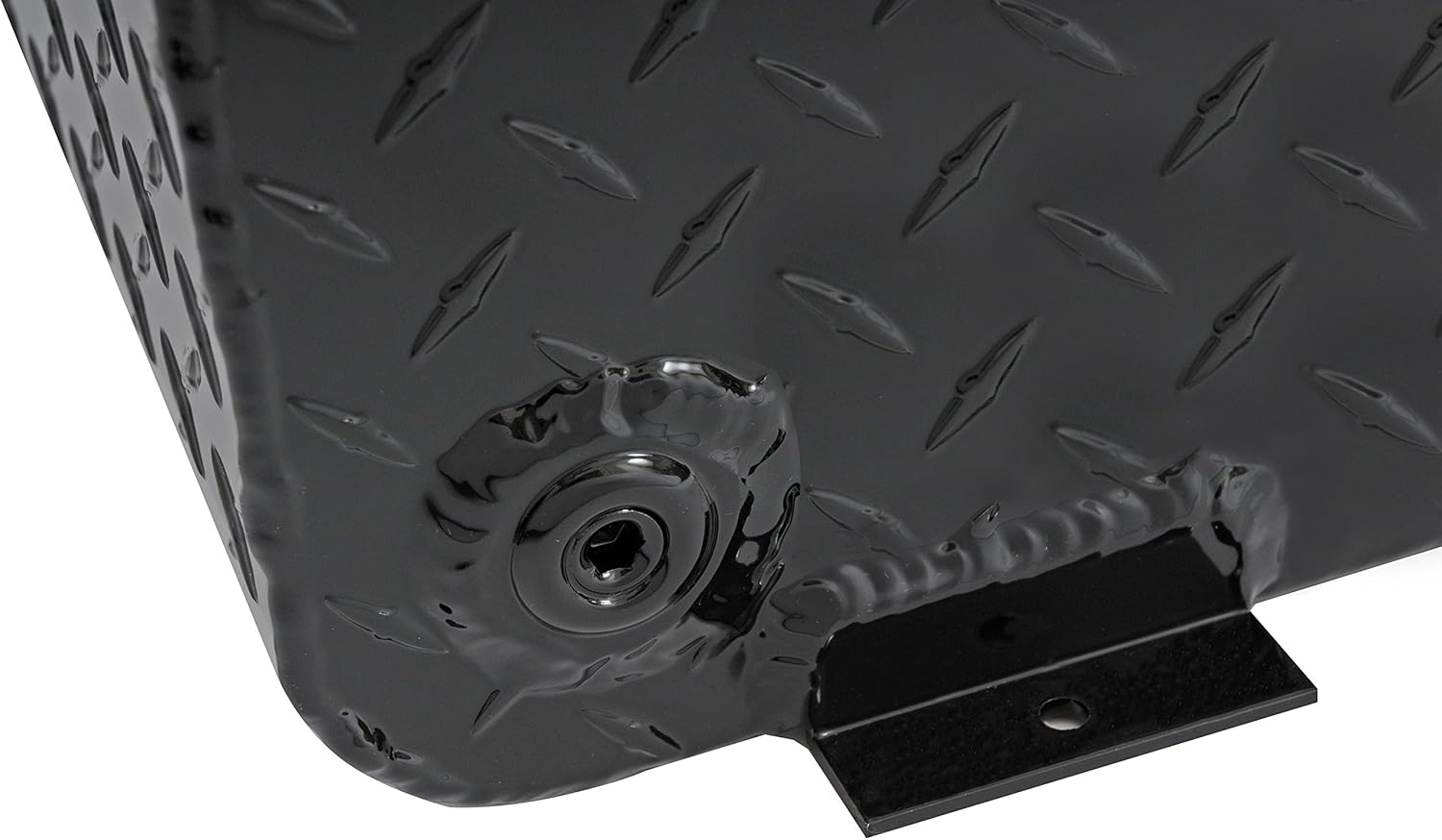 Dee Zee Transfer Tanks - A safe and convenient means for transporting non-flammable liquids. Constructed of heavy gauge Brite-Tread aluminum. Black powder coat finish. Radius curve design eliminates key weld pressure points. Tanks feature stability baffles, lockable cap, 3/8" drainage plug, and venting coupler. Tanks are intended for private use (non-commercial). Not designed for use as an auxiliary fuel system. Not for use with gasoline. Does not meet title 49 of the United Stated Federal Registry.