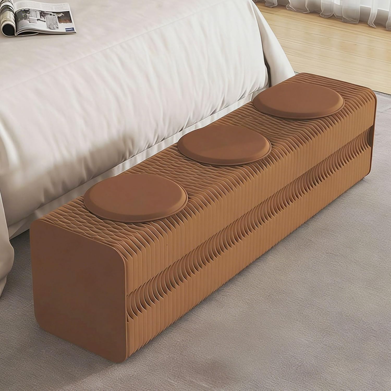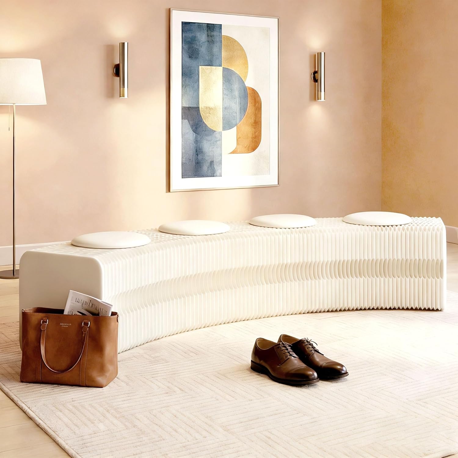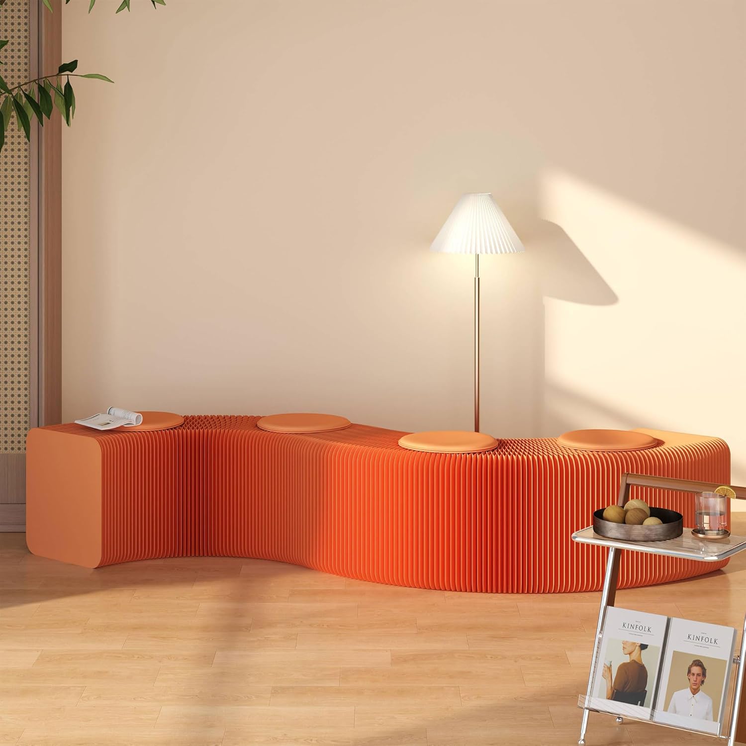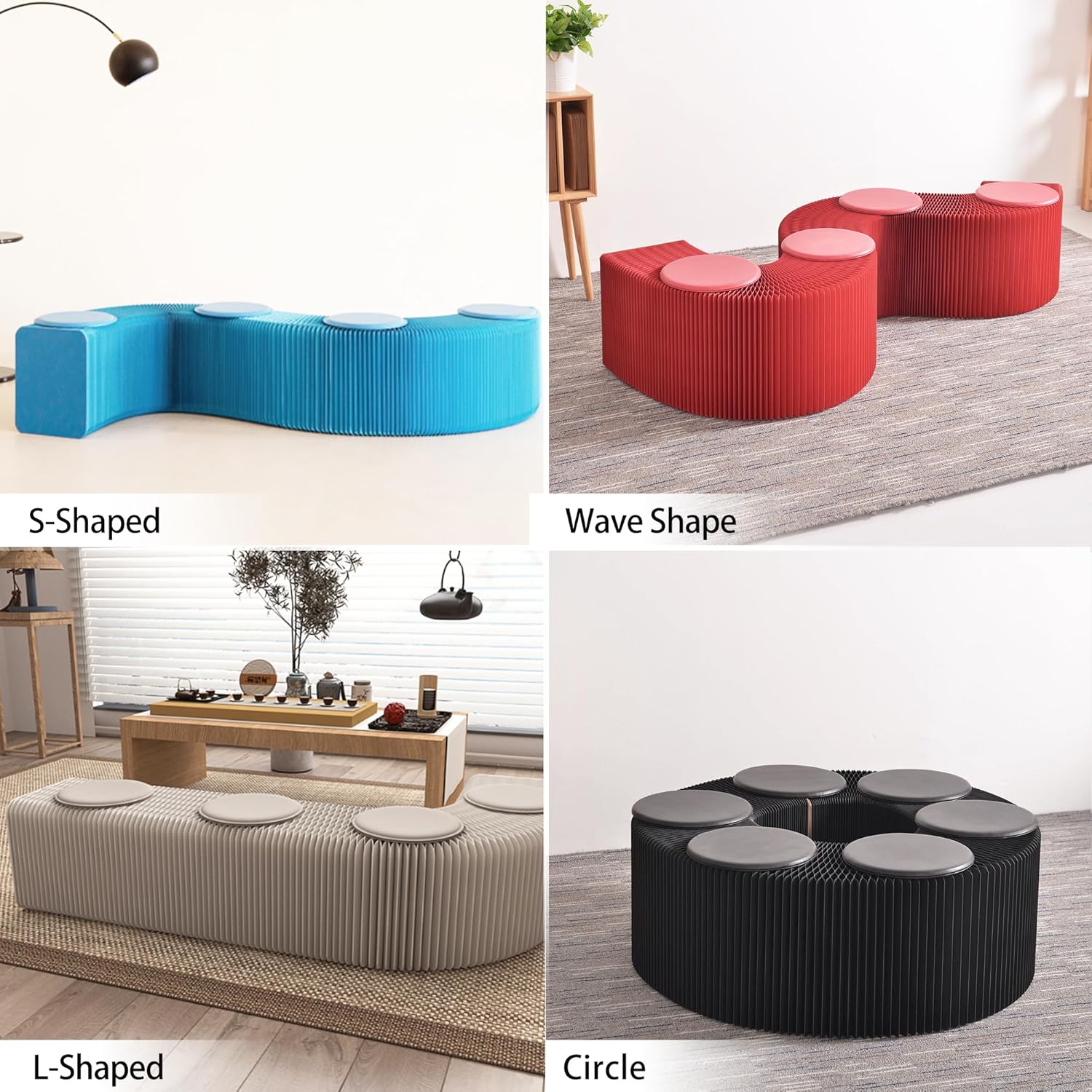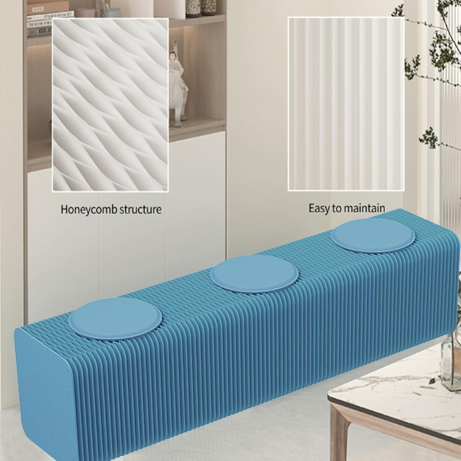 | Product Care Instructions | Fire Safety: Keep away from open flames, fireplaces, or any high-heat sources. This folding bench is made of kraft paper and is flammable., First Use: For optimal stability, fully stretch the bench with a partner a few times before your first use to reduce spring-back., Stay Dry: Avoid contact with water or humid environments. If spilled, wipe immediately with a dry cloth and air dry., Use Cushions: Always use the provided cushions when sitting to protect the honeycomb structure from indentations., Weight Limit: Do not exceed the weight capacity of 660 lbs per cushion. Always sit gently to distribute pressure evenly. |
