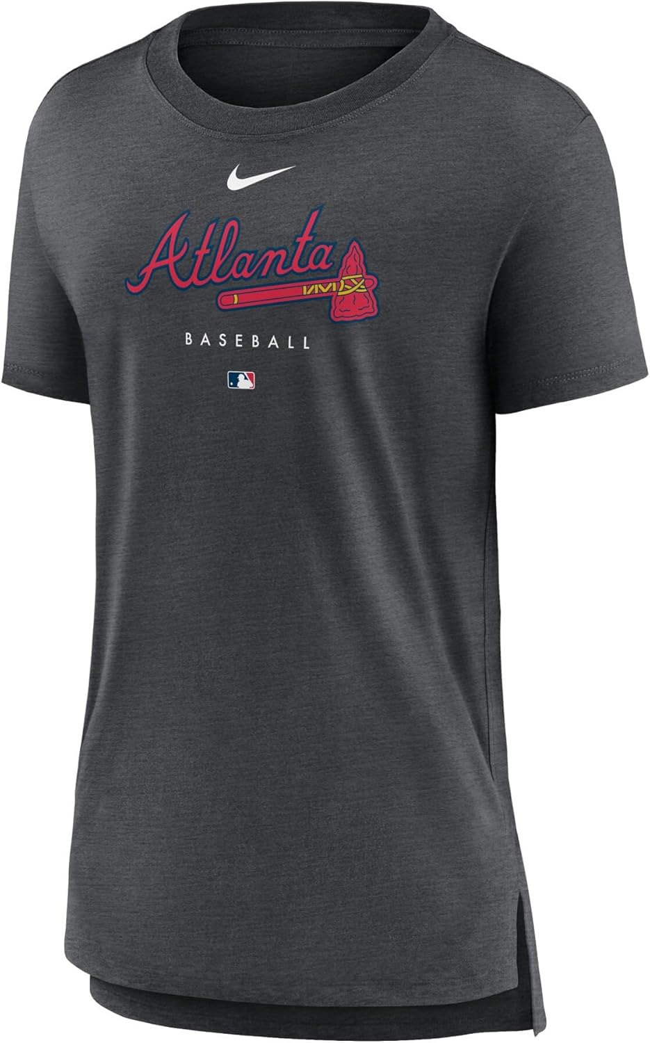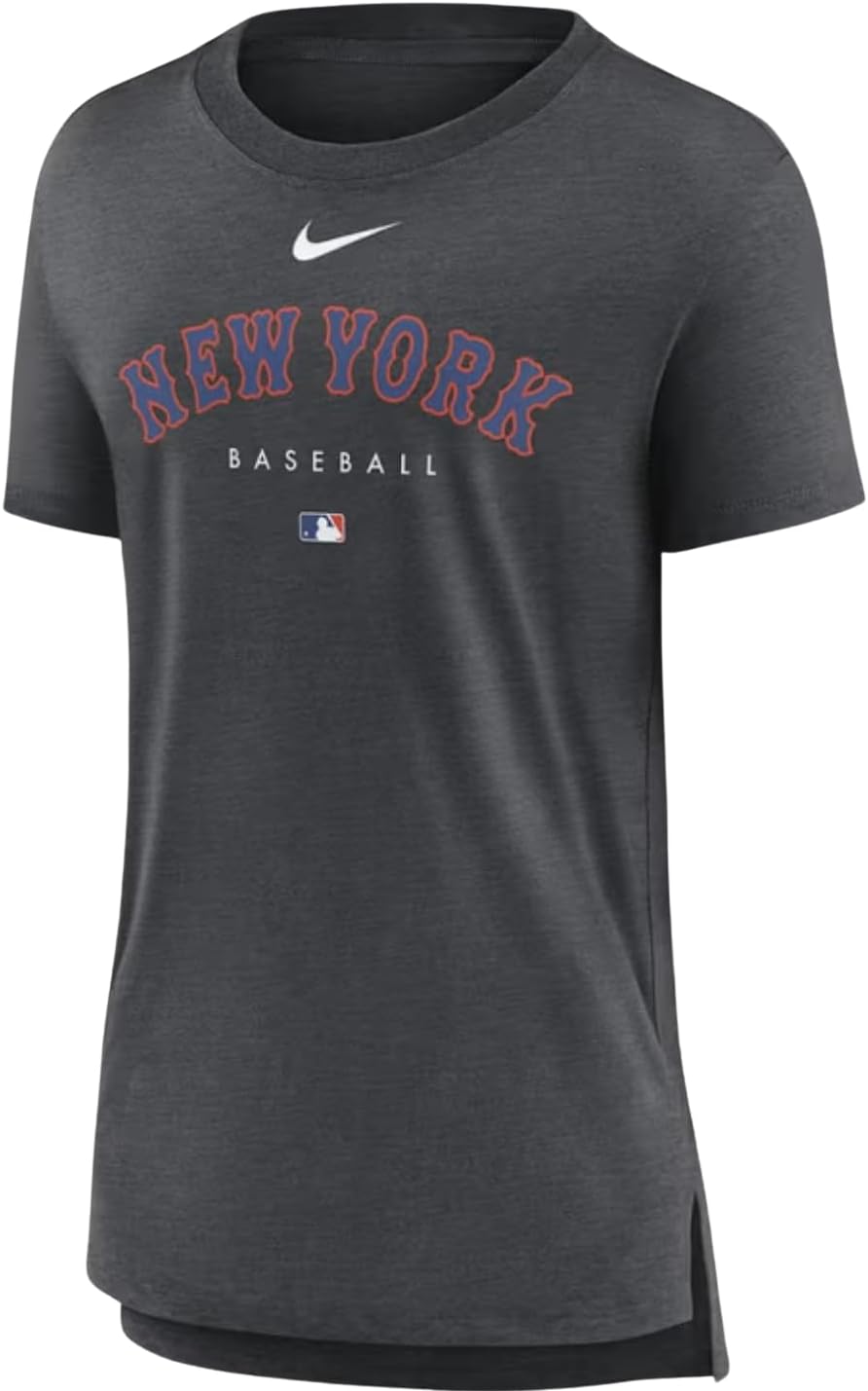 The Women's Nike MLB Authentic Collection Early Work Tri-Blend T-shirt is the perfect way to show your support for your favorite MLB team. Made from a comfortable blend of polyester, cotton, and rayon, this t-shirt features screen-print graphics that proudly display your team pride. The flatlock stitching and droptail hem with side splits provide a comfortable and stylish fit, making this t-shirt perfect for any baseball fan.