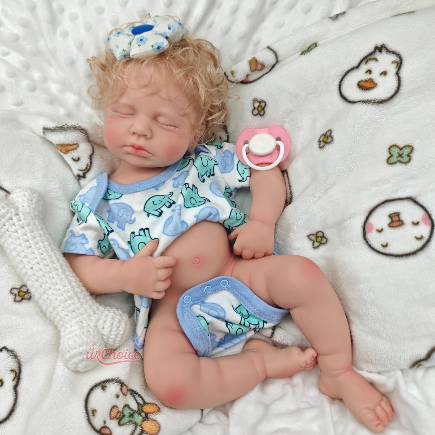 Discover the exceptional artistry and emotional connection offered by this breathtakingly realistic silicone reborn baby doll. Meticulously handmade by skilled artists, this 50cm(20inch) full body silicone baby doll embodies the true essence of a sleeping newborn. Weighing 3.1kg(6.82lbs), its weighted body provides an authentic and comforting feel, enhancing the real-life cuddling experience. Safety is paramount: Our doll meets all required CPC, CE, and ASTM standards. Embrace the joy and relaxation that comes with owning this beautiful handmade silicone baby doll. Crafted from advanced premium platinum silicone, this realistic painted silicone reborn baby doll is not vinyl, ensuring a soft, durable, and washable surface that is easy to clean. The stunning lifelike details include an opened mouth expression, peaceful sleeping face, hand-rooted hair, hand-implanted eyelashes, and intricate skin painting with subtle veins and rosy tones reminiscent of a real infant. The poseable limbs allow for natural positioning, adding to its charm. Ideal as a cherished collectible, a companion for seniors, a nurturing tool for children, or a valuable resource for parenting practice and education, this lifelike with open mouth boy/girl doll encourages learning and bonding.