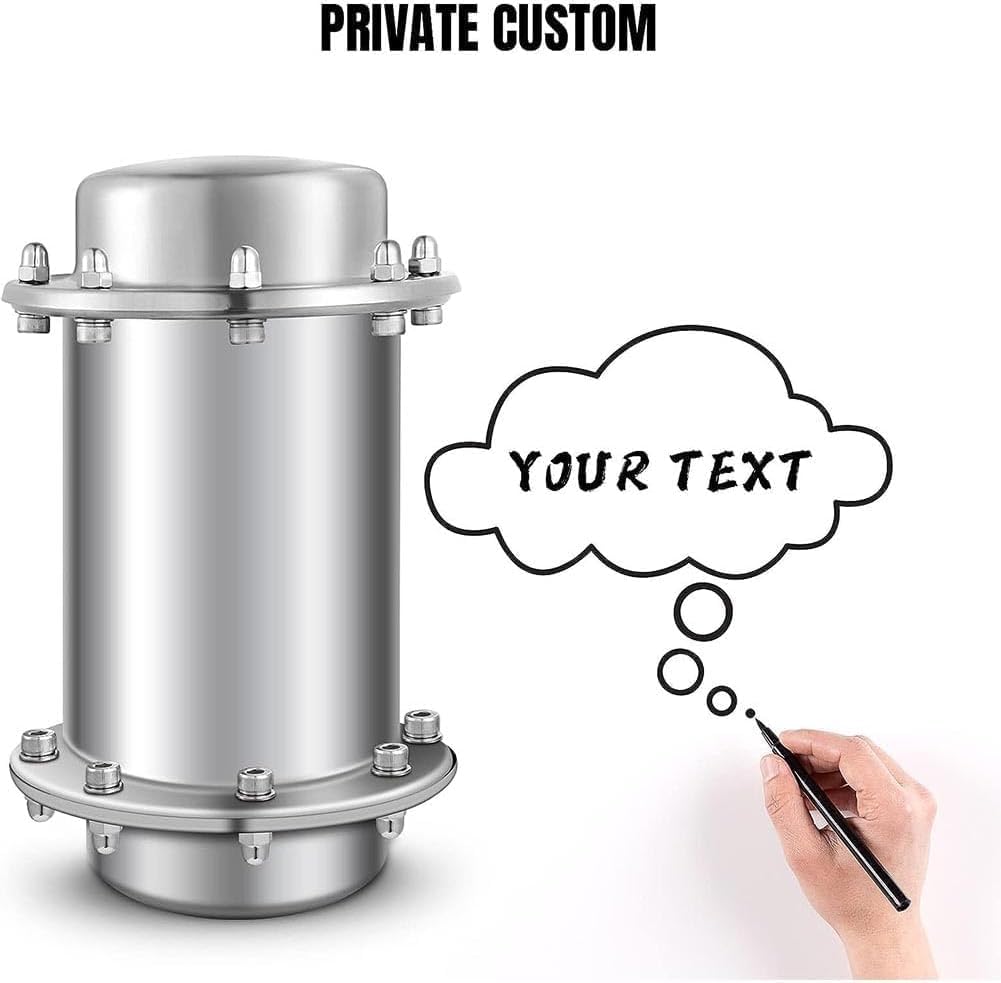 Time capsule - the best gift for the future, with high strength, high corrosion resistance, high sealing performance, pressure resistance, low temperature resistance, high temperature resistance, and low aging resistance.Material: 304 stainless steel.Waterproof grade: IP68.Pressure resistance: 10 MPa (1000 meters underwater).Service life: 200 years.(To achieve the best waterproof effect, please tighten the screws diagonally).7.3in/18.5cm Style Size:Inner diameter: 8.6cm/3.4in | Inner length: 12cm/4.7inExternal length: 18.5cm/7.3in.Thickness: 1mm.10.2in/26cm Style Size:Inner diameter: 10cm/4in, inner length 17.5cm/6.9inExternal length:26cm/10.2inThickness: 1mm13.4in/34cm Style Size:Inner diameter: 10cm/4in, inner length: 25.5cm/10inExternal length: 34cm/13.4inThickness: 1mm16.3in/41.5cm Style Size:Inner diameter: 10cm/4in, inner length: 33cm/13inExternal length: 41.5cm/16.3inThickness: 1mm20in/50cm Style Size:Inner diameter: 10cm/4in, inner length: 41.5cm/16.3in.External length: 50cm/20inThickness: 1mmScope of supply:Includes a pair of gloves, two silicone washers, and all necessary accessories for assembling the time capsule.Please pay attention to the special accessories in the pictur